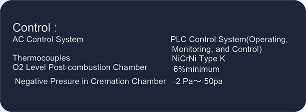 in the PLC system and displayed on the touch-screen.Any adjustments in the parameters of the cremation process can easily be made using the same touch screen. We can also assist you remotely via a remote connection should any adjustments need to be made in the cremation process.
