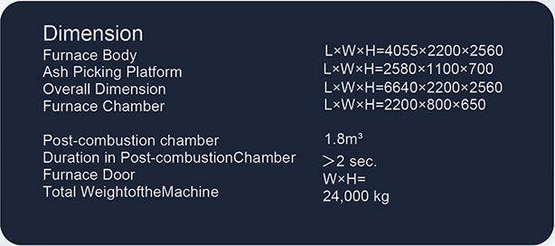 This furnace model is an eficient combination type with a secondary combustion system. The main framework is made of Q235 steel, and the exterior is finished with high-temperature electrostatic spraying, customizable according to customer requirements. The furnace chamber is expertly constructed using T-3 refractory bricks and high-temperature adhesive