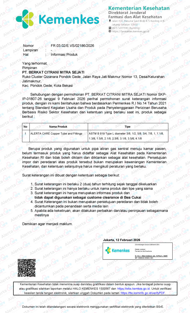 The standard Length for drawn tempered ASTM B819 tube is 5.8 meters. The ASTM B819 tubes are produced in two standardized thickness which are specially cleaned to suit medical installation standards. These standardised thicknesses are identified as Type L and K. The tubes shall be installed in conformance with the requirements of the National Fire Protection Association (NFPA) Standard 99 and Canadian Standards Association (CSA) Standard Z 305, 1/2 7396.1, Nonflammable Medical Gas Piping System.